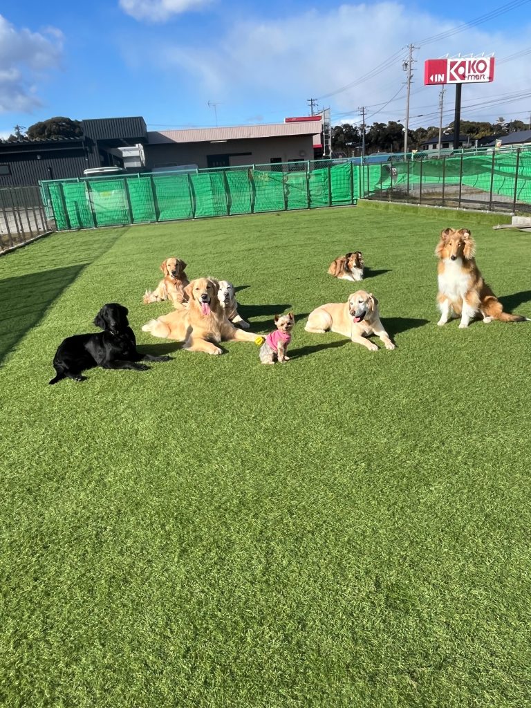 ドッグランでは、お泊りのワンちゃんたちがボール遊びで盛り上がっています 😀